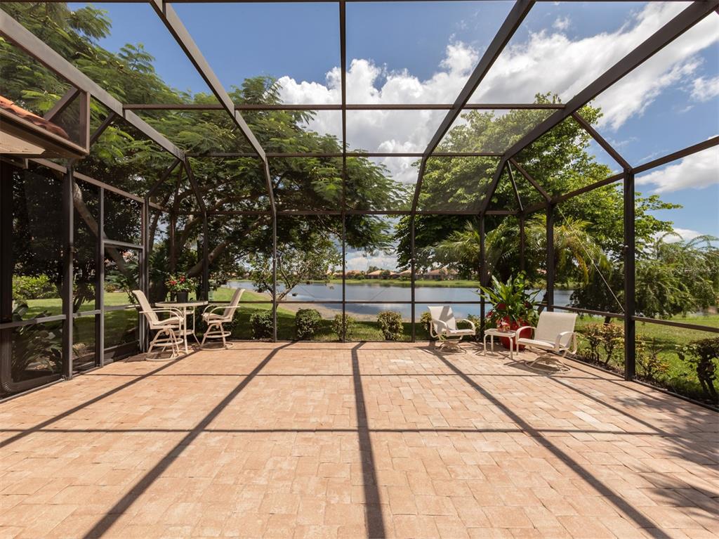Start your day enjoying TRANQUIL SUNRISES and the EXTENDED SCREENED LANAI with beautiful LAKE VIEW in this WCI built Vecellio home with 2,395 sq. ft. of living area. Enter through the DOUBLE DOOR entry (including double screens) to the inviting foyer with custom columns and lighting. To the left, find a Den/Study/Office with double doors, and Bamboo Flooring.To the right, find a formal dining room with bay windows and double tray ceiling. The direct view upon entry is of the GREAT ROOM with tray ceilings and the LANAI with BREATHTAKING WATER VIEWS. Three sets of sliders lead to the LANAI LAKE VIEW and OUTDOOR KITCHEN. The interior kitchen opens to the GREAT ROOM, DINING ROOM, and DINETTE. It features wood cabinetry, pull-out shelving and trays, granite counters, a breakfast bar with pendant lighting, gas appliances and pantry all with views to the lanai and lake. The owners' suite is situated to enjoy the SOOTHING WATERVIEWS and GORGEOUS SUNRISES through a bay window. It features tray ceilings, hardwood flooring, his and her walk-in closets with custom organizers, a glass shower with heat lamp, separate garden tub and dual sinks. Guest bedrooms have easy access to an updated full bath and half bath. Guest bedroom features include large, organized closets, Corian finished desk and drawers. Laundry room includes added cabinetry. Home offers a very OPEN and AIRY FEELING with natural lighting, soaring ceilings, crown molding, tile on diagonal, plantation shutters, ceiling fans throughout, custom faux painting, track lighting, outdoor stereo speakers on the lanai, plus so much more. It's a must see to appreciate! Paver drive to the 2-CAR GARAGE with storage cabinets, attic storage with pull down ladder and custom garage floor finish. Conversion of the heating/cooling system to SOLAR and with newly installed state-of-the-art microinverters, the house may be the most energy efficient in the development. Lush tropical landscaping with lighting and new Rain Bird irrigation system. Outside your door, the Venetian and Golf and River Club features many fine amenities: an 18-hole championship golf course, large, heated pool and lap pool, six Har-Tru tennis courts, a nature trail, first class fitness center and exercise room. The River Club also boasts a poolside Tiki Bar and fine dining in its restaurant. All of this and only a short drive to the best of Gulf Coast beaches, attractions of downtown Venice and the reassurance of the services offered by the newly completed renowned Sarasota Memorial Hospital.