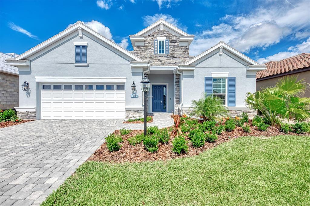 Brand new and move in ready! Be one of the first to live in this new gated section within Grand Palm. Beautifully landscaped, tile roof and stacked stone front add to this homes beauty. Upon entering the home you will notice its open concept living and upgrades throughout; including LVP natural wood look plank flooring, coffered ceiling in great room, dining room, two guest bedrooms, guest bath, office/den. You will be impressed with 10' ceilings, lots of natural light, 8' doors, hurricane rated windows/doors; no need to worry about shutters. This home also features a Gourmet Chef's Kitchen, equipped with solid wood maple cabinets in linen, double stacked cabinetry to the ceiling, custom cabinet chef's hood vented to the outside, beautiful quartz (Calacatta Novella) countertops, natural gas cooktop, build in oven and microwave, beautiful tile backsplash, upgraded stainless GE appliances, farmhouse style sink, walk-in pantry with glass front door and wood shelving. The Owners suite is located at the back of the home; featuring coffered ceiling in Owners suite, two custom walk-in closets with custom built ins, upgraded Owners Bath with walk in shower, double sinks w/quartz counter tops and private water closet. At the back of the home you'll enjoy pocket sliding doors leading you out to the covered lanai. Ready for an outdoor kitchen, plumbed w/natural gas. Large back yard perfect for a custom pool or to enjoy the outdoors. This is what resort living should be like! Grand Palm offers a one-of-a-kind blend of natural beauty, active-living amenities and new homes that accommodate all lifestyles. Here, neighborhood residents enjoy a range of activities. The state-of-the-art Community Center includes a resort-style pool with waterslide. A splash park and the Adventure Playground entertain the kids. Grand Palm also features a fitness pool and miles of walking and bicycle trails. The newly opened Social Club has a resort-style pool, pickleball courts, game and gathering spaces and an open-cafe kitchen for residents to enjoy. Adventure Lake with Lookout Point Island invite kayaking and taking in the nature views. Basketball, tennis, bocce ball and volleyball courts provide opportunities for enjoying sports. Pet owners appreciate the two dog parks, one for large dogs and one for small. If that's not enough Wellen Park downtown area will be completed by 2025 with some shops and restaurants already open. Catch a baseball game or head to one of many nearby beaches from Siesta Key, Venice Beach or Manasota Key.