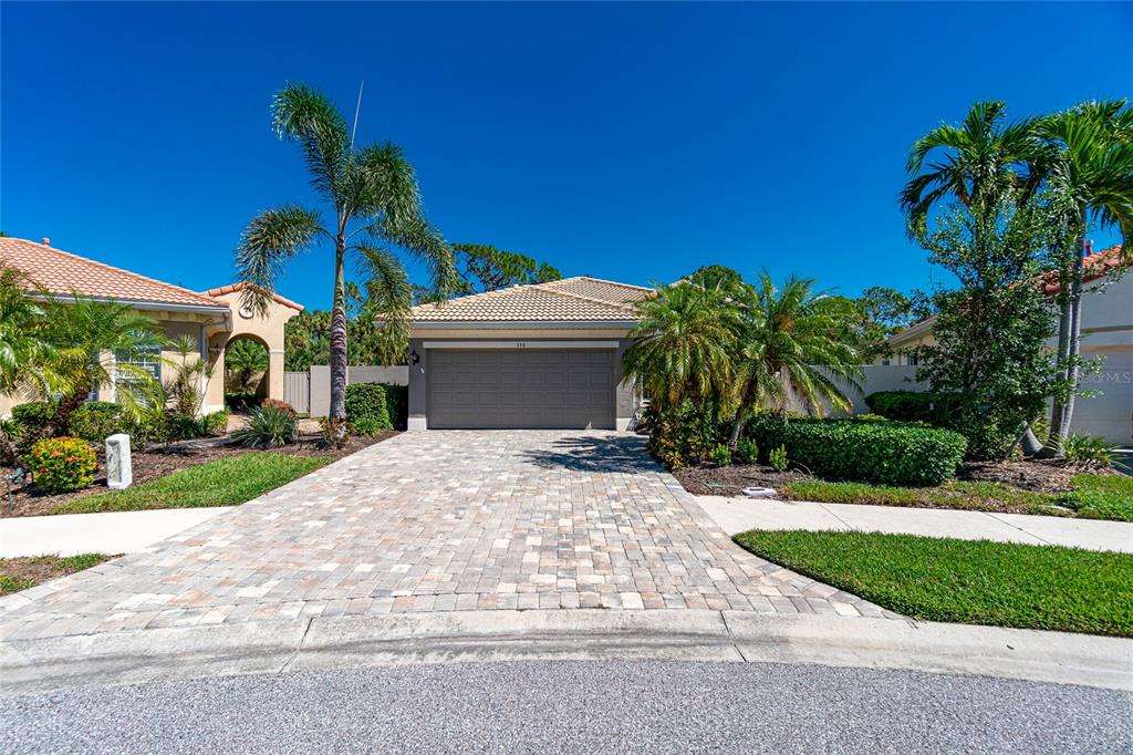 A delightful gem on a cul de sac with a PRIVATE HEATED SALT WATER POOL AND SPA! This WCI bult Massari model offers a very light and bright three bedroom home with two full baths. Open the sliders in the living room and enjoy the paved screened lanai area with pool/spa and views of the lake plus privacy landscaping on a preserve. Tray ceilings in the living room create a spacious appeal. Kitchen with beautiful 42" cabinetry, granite counters with tiled backsplash, gas stove, stainless steel appliances, breakfast bar and a formal dining area. Other features include crown molding, custom closets, ceiling fans, lots of neutral tile flooring, plantation shutters and window treatments, remote hurricane shutter, new pool heater and pool grab bar for easy access, plus a retractable screen on front door. Great place for year around living or a winter get away. Outside your door, the Venetian and Golf and River Club features many fine amenities: an 18-hole championship golf course, large, heated pool and lap pool, six Har-Tru tennis courts, a nature trail, first class fitness center and exercise room. The River Club also boasts a pool side Tiki Bar and fine dining in its restaurant. All of this and only a short drive to the best of Gulf Coast beaches, attractions of downtown Venice and the reassurance of the services offered by the newly completed renowned Sarasota Memorial Hospital.