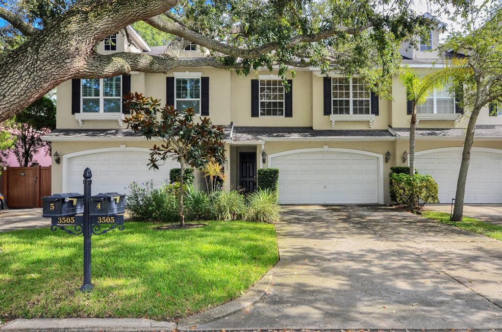 This townhome has the space & feel of a house! This two-story has a pavered sidewalk and front porch with well-maintained landscaping leading up to the front door. The foyer has a coat closet, powder room, and the entrance to the garage. Solid oak hardwood floors adorn ALL living areas, bedrooms, and stairs w/white risers. The living room has crown molding & is wired for speakers. Sliding doors off the dining room lead to a covered porch and private pavered patio perfect for grilling and lounging! The kitchen opens up to the living & dining and contains large 42" upper cabinets w/crown caps, granite counters, stainless appliances, built-in desk, large pantry, and breakfast bar w/decorative corbels. At the top of the stairs is a loft and laundry room. The master bedroom is very large and has a sitting area, trey ceiling inlaid with crown, wired for speakers, and dual walk-in closets. The master bath has similar cabinets & granite as the kitchen, an long dual vanity w/make-up area, garden tub, separate shower and linen closet, Additional features: A/C appears to be 2021; refrigerator is newer; 8' doors; decorative trim around doors & windows; under-stair storage, wood blinds; alarm system; dimmer switches in most rooms; 9'6" ceilings. Walking distance to Bayshore Blvd. and numerous Palma Ceia restaurants, bars, retail, and salons