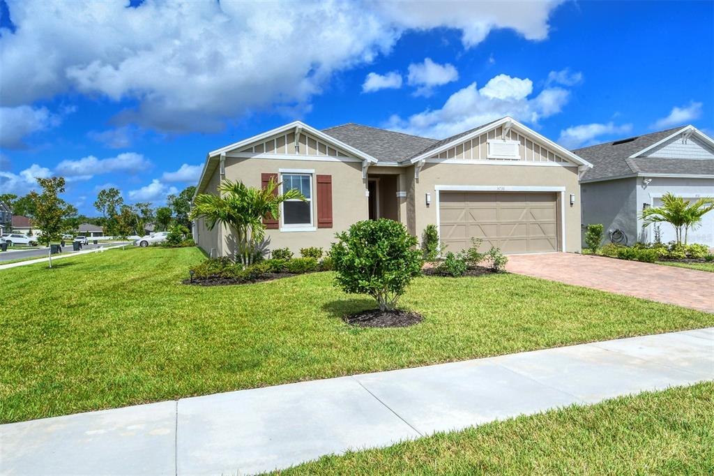 All the benefits of Lakewood Ranch without the cost of additional CDD's! Why wait months and months to build your dream home, when you can move right into this 2022 built home? Comprising of a spacious open floor plan with 4 bedrooms and 2 bathrooms, this home offers well laid out single level accommodation with spacious owner’s bedroom suite including upgraded California Closets. The kitchen has an abundance of storage, a big center island to gather around, stainless appliances, 42-inch uppers and gorgeous granite countertops. The home is painted in neutral shades ready for you to add your personal touches! The larger corner lot allows room for a beautiful pool if you would prefer your own private oasis, and the yard can be fenced for complete privacy (subject to HOA guidelines). Avaunce is a newer development with a lovely resort style community swimming pool built by KB Home. Located near the intersection of State Road 70 and Lorraine Road and convenient to everything that Lakewood Ranch has to offer including highly regarded schools, fabulous golf courses, multiple shopping/amenity plazas for your daily errands and multiple restaurants. All this and still a short distance from UTC Mall, Waterside Place, Downtown Sarasota and let's not forget the world class beaches!