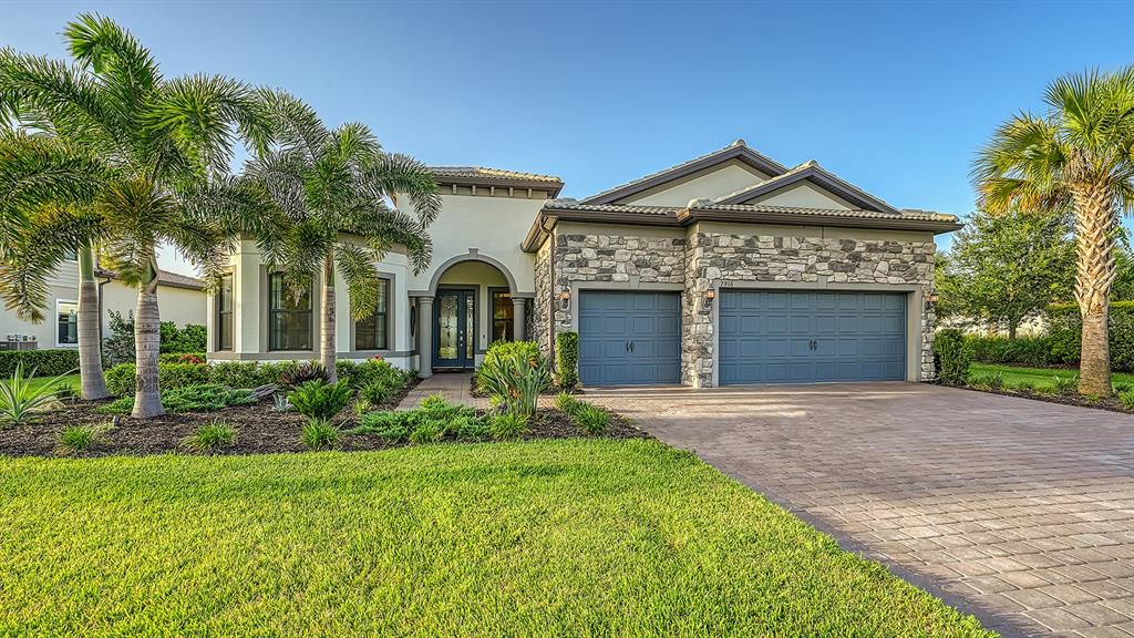HUGE PRICE IMPROVEMENT! Say Hello to refined and relaxed lakefront living in this stunning luxury residence. Amazing, uninterrupted water view takes your breath away the moment you step in. Comfortable, open floor plan flows effortlessly and invites you to enjoy life to its fullest. The chef of the house will love the beautiful gourmet kitchen with high-end appliances, wine refrigerator large walk-in pantry, natural gas cooking, beautiful quartz countertops and premium diamond cabinets, all the way to the ceilings. Living area features dramatic coffered ceilings, state of the art fan with cutting-edge smart technology and opens through sets of stackable glass doors (all hurricane proof windows and doors) to the outside living space. Amazing, custom designed, summer kitchen features Alfresco 36" natural gas grill with built-in Smoker and Rotisserie and Alfresco 24" Versa Burner/Griddle/Wok and a beautiful LED fireplace. Relax with a drink in your custom designed, salt water, heated pool with a spa, overlooking peaceful private water views and tropical sunrises and sunsets. Master bedroom retreat has the same beautiful water views and a luxurious bathroom with an enormous walk-in closet. This is smart home with voice-controlled lights, fans, front door lock, pool, Sonos speakers system. Please ask for the complete list of features and upgrades. The location and the walkability within this sought-after, brand-new Sarasota community, cannot be more perfect. A discrete path to right of the back yard is an alternate way to walk to the resort style amenities, including community pool and spa, coastal inspired club house with catering kitchen, state-of-the art fitness center, kayak launch, tennis and pickleball, multipurpose turf lawn, outdoor bar, firepit, barbecue grills and beach area with hammocks. You can also walk to the brand-new Waterside Town Center with a colorful Farmer's Market every Sunday and a variety of dining and boutique shopping options. Waterside at Lakewood Ranch is the hottest Sarasota address featuring scenic lakes, totaling 144 acres and beautifully landscaped preserves and parks.